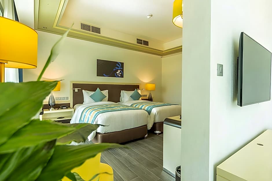 The spacious twin room features air conditioning, a private entrance, a balcony with pool views as well as a private bathroom boasting a bath. The unit has 2 beds.
